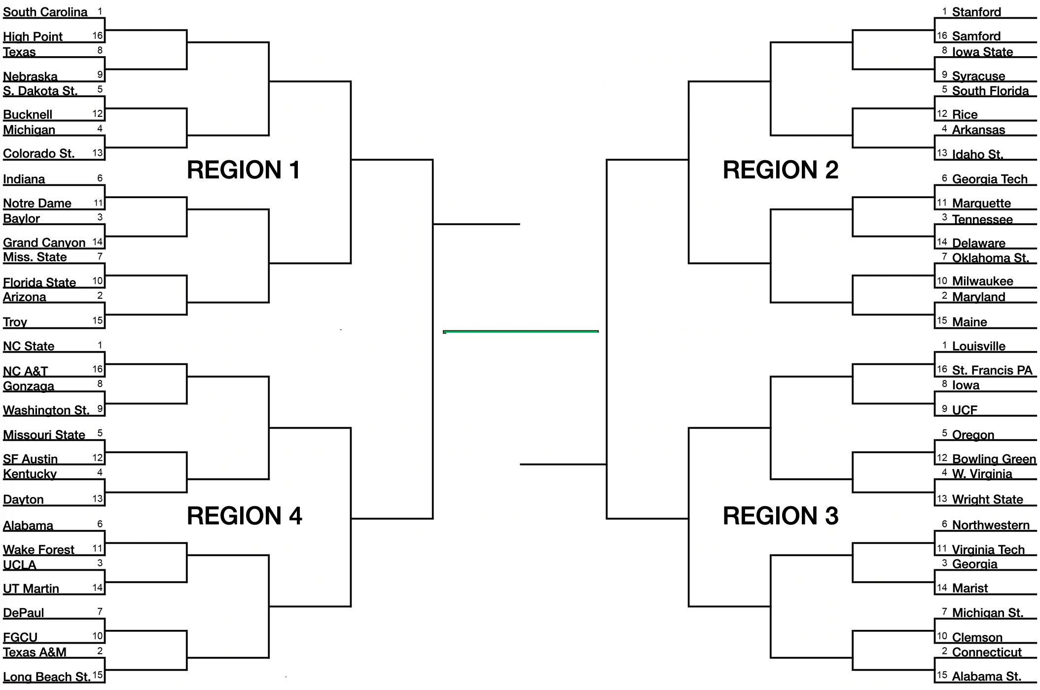 South Carolina, Stanford, Colorado, Ohio State would be no. 1 seeds
