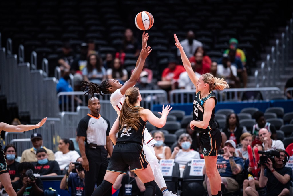 On an early Thursday afternoon, the New York Liberty were down six points with 45.4 seconds remaining on the road in Washington. Point guard Sabrina Ionescu brought the ball up and passed to the teamโs secondary ball handler in Marine Johannรจs. While the French import surveyed the Mysticsโ defensive unit, Ionescu shuffled to the other side of the floor, with Ariel Atkins of the Mystics trailing her closely.