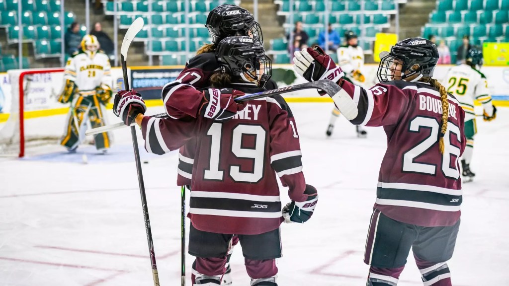 Rhéaume got the start for Union in game one and made an impressive 38 saves, but game two was a different story. Rhéaume lasted just 14 minutes — allowing four goals on nine shots — before she was replaced by Wagner. Seniors Grace Gilkyson and Jordan Ray paced the Bulldogs in scoring with four points apiece in the win.