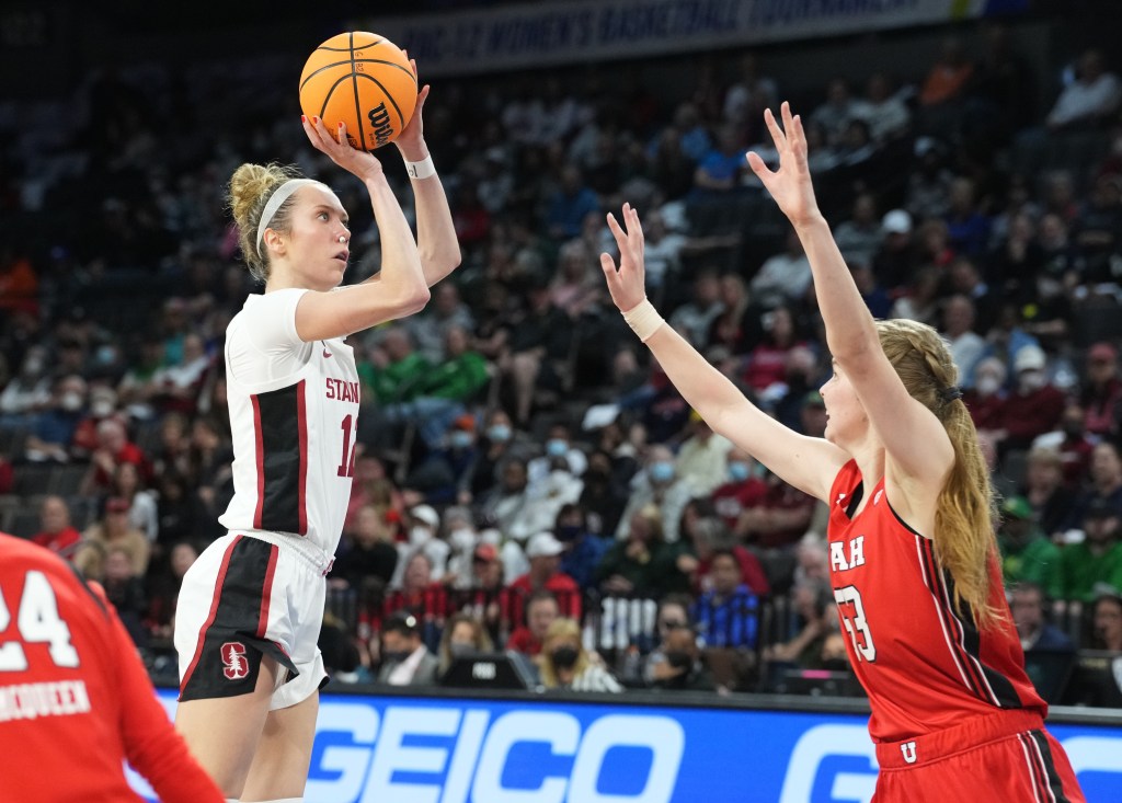 Game Summary: Stanford came out in the first and dominated down low. Cameron Brink and Haley Jones combined for 14 of the Cardinalโs 21 points in the first frame and led Stanford to a 10-point lead after one. Utah responded in the second behind the #1 offense in the Pac-12. The Utes shot 75% from the field in quarter number 2 and made four threes to cut the deficit to just two points going into the half. Jones led all scorers with 13 while Dasia Young had nine for the Utes. Utah came out in the second half and scored the first basket to tie the game at 32. After that, Stanford finished the third on a 20-11 run. Utah was able to make it a single-digit game going into the fourth thanks to a four-point play by Brynna Maxwell towards the end of the quarter. Stanford started the fourth with a 10-0 run to seal their 15th Pac-12 tournament championship. Jones was named the Pac-12 Tournamentโs Most Outstanding Player. Brink, Anna Wilson, Jenna Johnson, Gianna Kneepkens and Nyara Sabally made up the All-Tournament team.