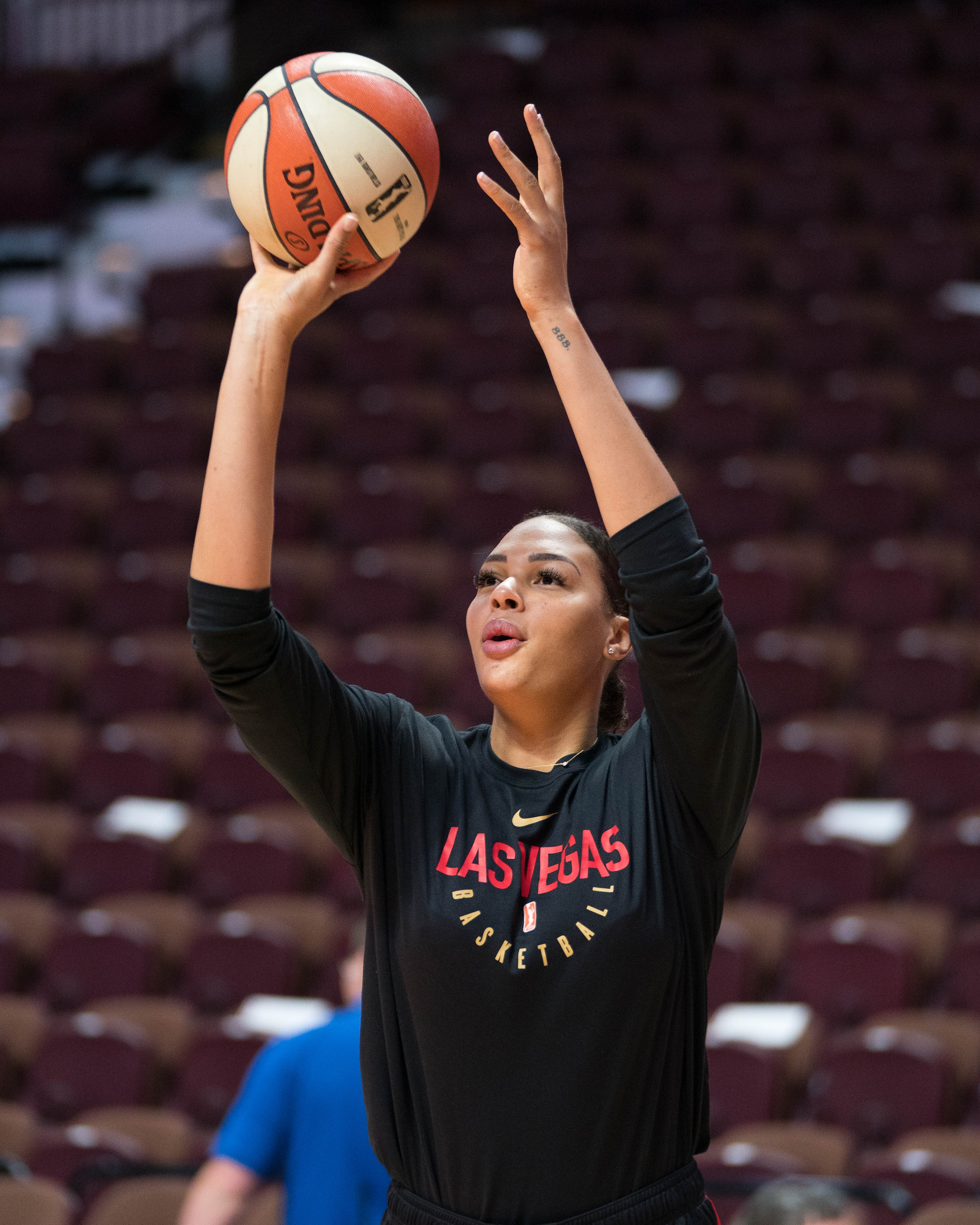 Las Vegas Aces center Liz Cambage (8) warms up before the WNBA game between the Las Vegas Aces and the Connecticut Sun at Mohegan Sun Arena, Uncasville, Connecticut, USA on August 23, 2019. Photo Credit: Chris Poss