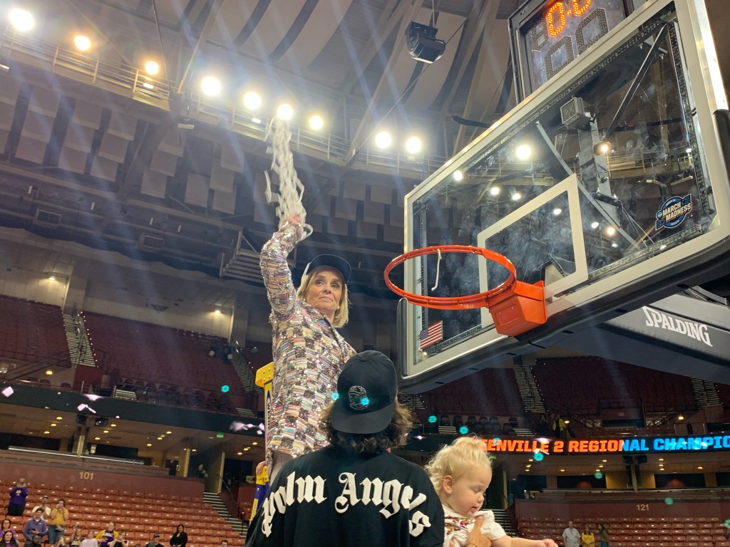 Mulkey emphasized that this team doesnโt need to win a National Championship this year to make Louisiana proud, as exhibited by the Tigers fans decked out in sequins and animal prints who travel near and far to support Mulkeyโs winning squad. And although sheโs immensely proud of the Final Four banner, she still wants to win.
