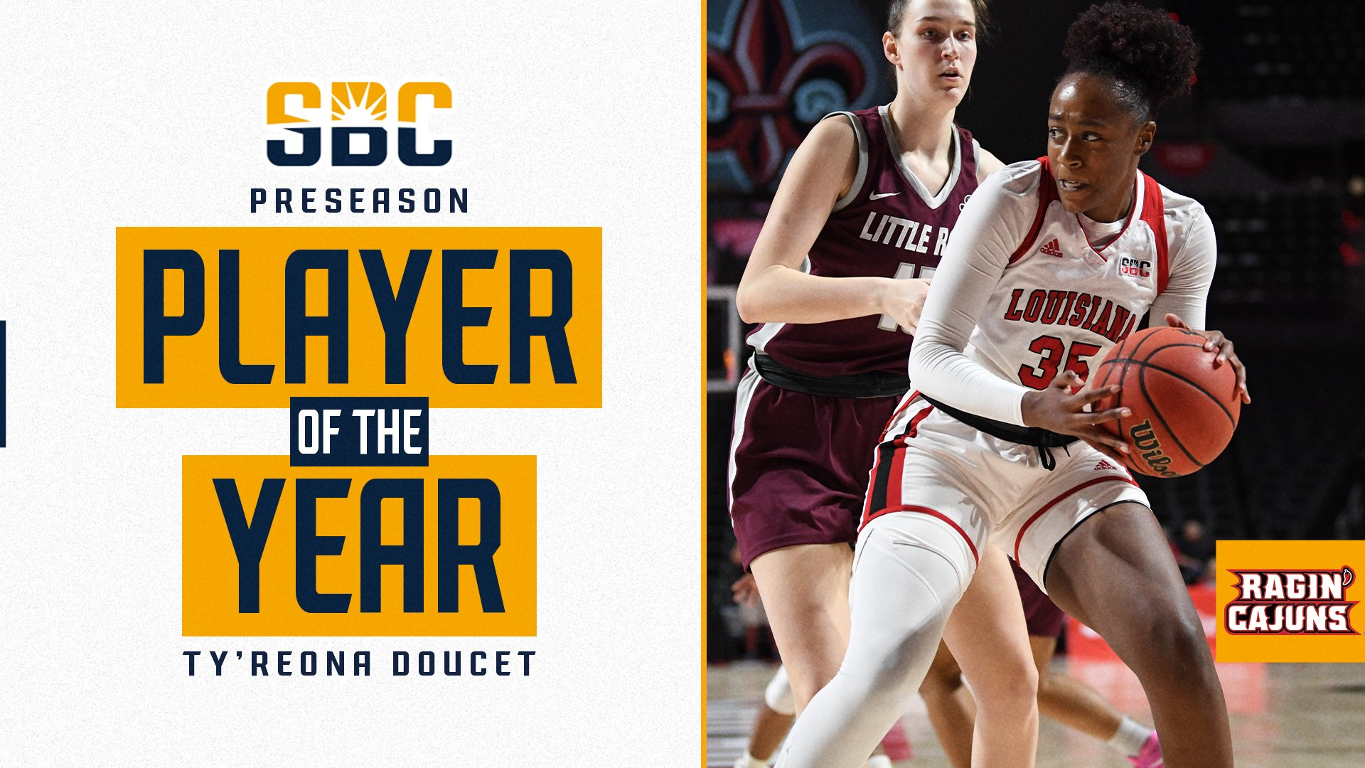 Louisiana’s senior forward Ty’Reona Doucet was named preseason Player of the Year for the 2021-22 season. Last season, Doucet led the Ragin’ Cajuns to the program’s first-ever regular-season conference championship and the conference title game. Along the way she led the conference in field goal percentage (52.4 percent) and averaged nearly a double-double (10.8 points and 8.7 rebounds) in conference play. Doucet also led Louisiana in total rebounds (167) and blocks (36).