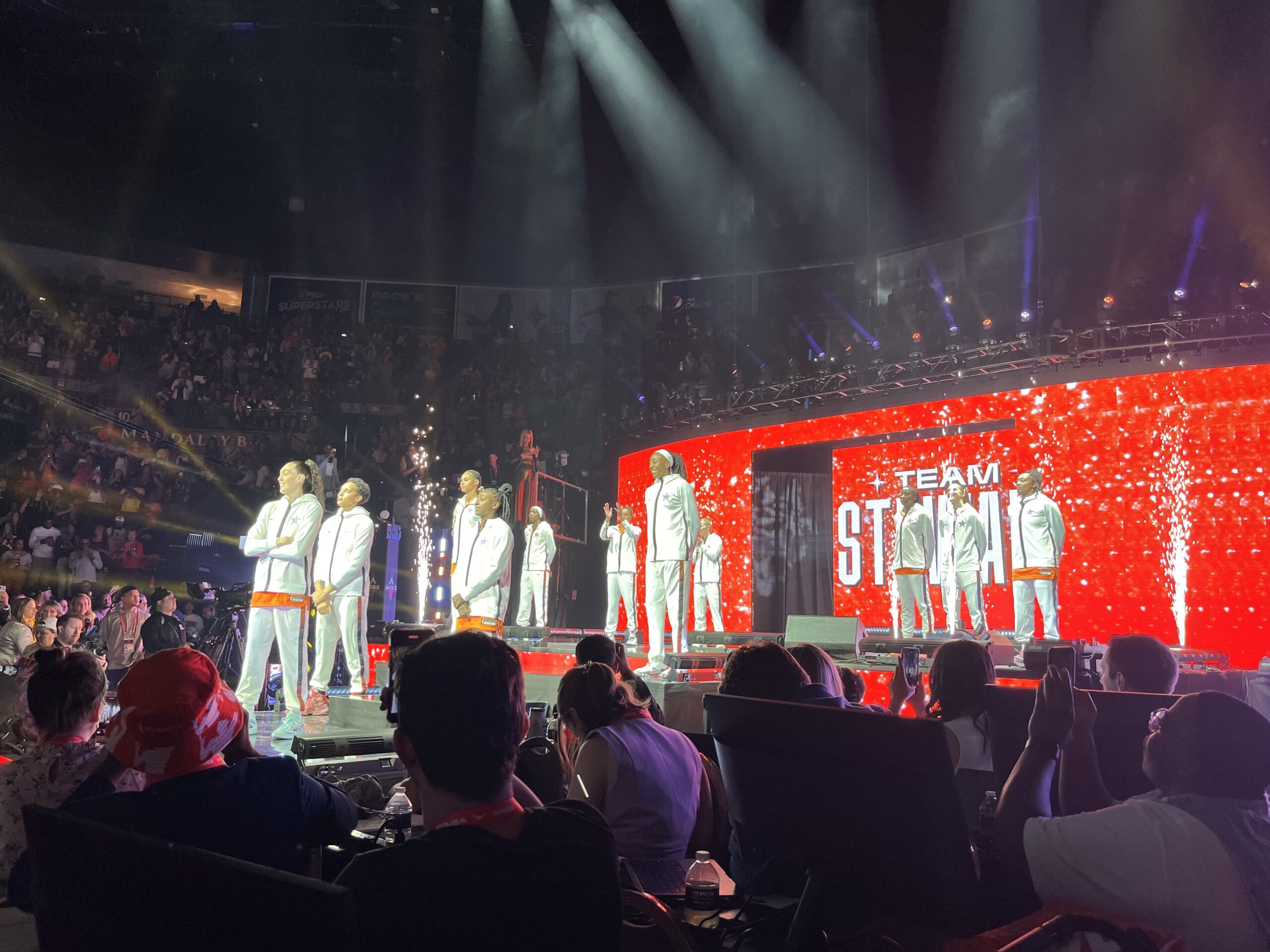 With the game being in the Sin City, the stars were out in full force to watch the Wโs best put on a show. There were multiple NBA stars courtside, with Kevin Durant, Tracy McGrady and DeMar DeRozan, to name a few. On top of that, there were many current and former WNBA stars, with Sue Bird, Sylvia Fowles, Seimone Augustus, and Sheryl Swoopes headlining the group. On top of that, new WNBA owner Dwyane Wade and Gabrielle Union got a huge ovation when they were shown on the jumbotron.