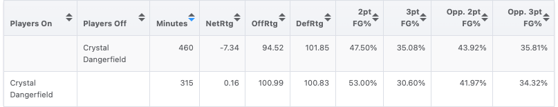 โI mean the plus-minus numbers with [Ionescu] and Crystal Dangerfield have been just astounding,โ Merchant said. โI gotta be honest, I watch Crystal Dangerfield and itโs like itโs sort of the way I felt about her on Minnesota where I know good things are happening, itโs just hard for me to figure out exactly why these good things are happening โฆ Maybe they are different for you, but for me, her contributions are hard to visually notice.โ