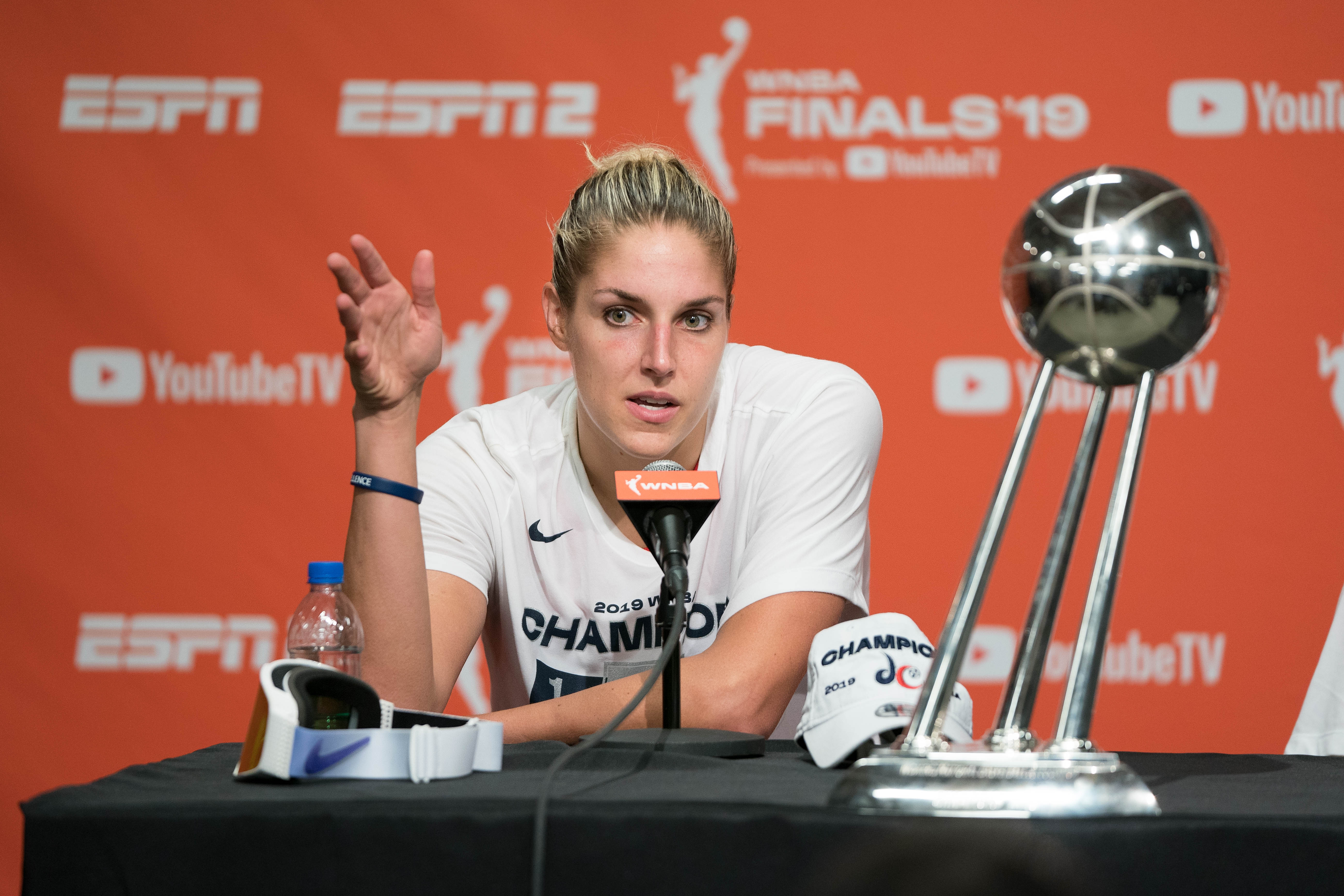 Washington Mystics forward Elena Delle Donne answers questions after winning the WNBA championship on October 10, 2019. Photo credit: Chris Poss