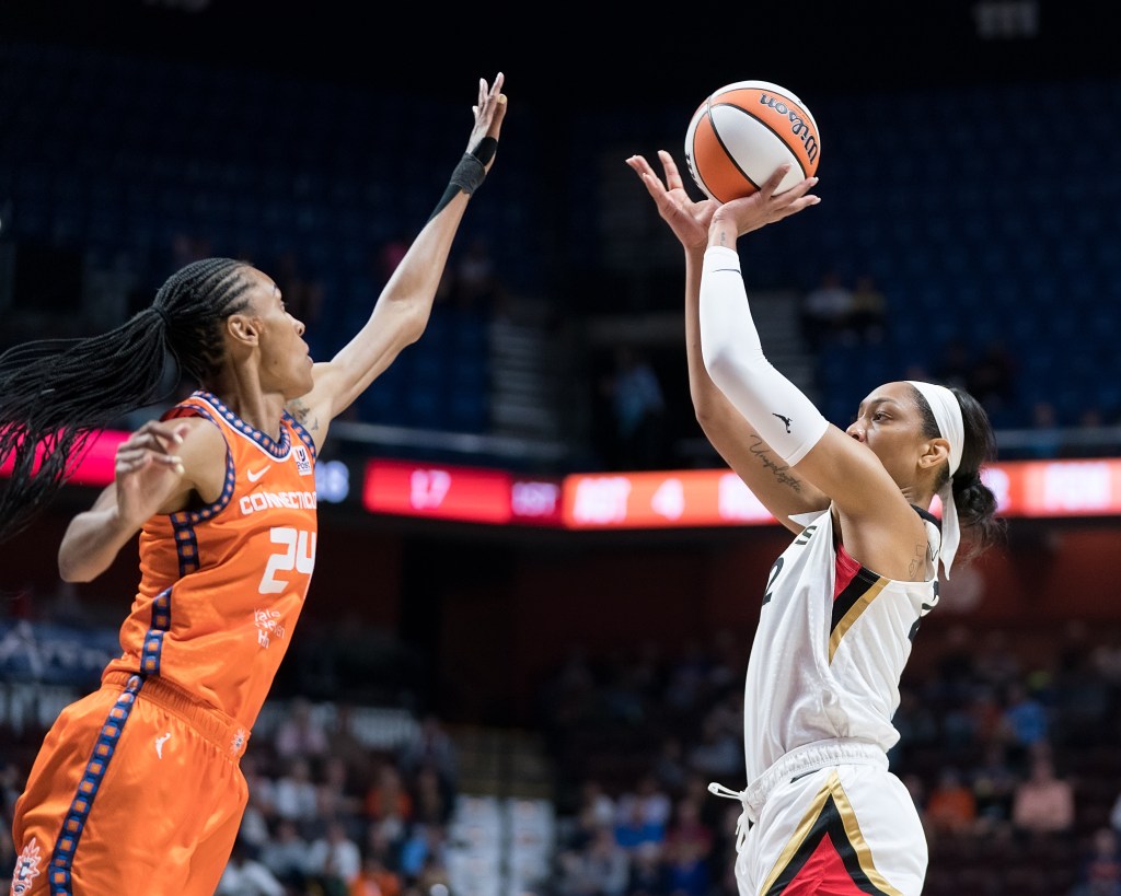 During the second quarter of Game 2, Jonquel Jones was killing the Aces, using her size to dominate the glass, grabbing offensive rebounds, and scoring around the basket. In the second half, the Aces made an adjustment, putting Wilson on her. At half Jones had 19 points, but she finished the game with 22. While Wilson is a phenomenal defender, it was a team effort โ doubles and digs from the Aces guards to make Jones life difficult.