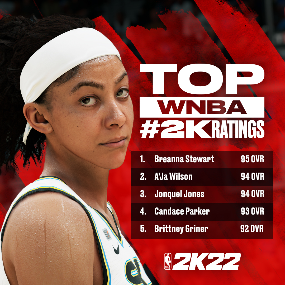 Breanna Stewart, WNBA 2018 regular season MVP and 2018 and 2020 WNBA Finals MVP, is the highest ranked player in this year’s version of the video game with a 95 overall score. A’ja Wilson and Jonquel Jones tie for second with a 94 overall score and Candace Parker (93) and Brittney Griner (92) round out the top 5.