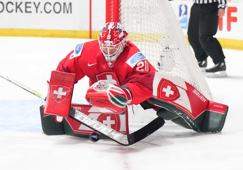 At its basic level, Brรคndliโs mask is a red and white color block look, but the decision to give it a mountain aesthetic elevates it to success. The mountains feature throughout, including along the sides, top, and backplate. Theyโre easily my favorite element here, especially the bold ones outlined in black along either side of the mask. Itโs also a very patriotic design without feeling like overload, with a Swiss cross on the chin and as a decal across the top, as well as text reading โSWISSโ down the middle. The backplate adds some personal touches, with a crest and subtle flower pattern, as well as the quote โItโs a great day for hockey.โ Brรคndli sported the same mask at last yearโs Worlds, and the design continues to be effective, working great alongside Switzerlandโs red and white jerseys. This design has everything the best goalie masks have: style, team pride, and personality.ย