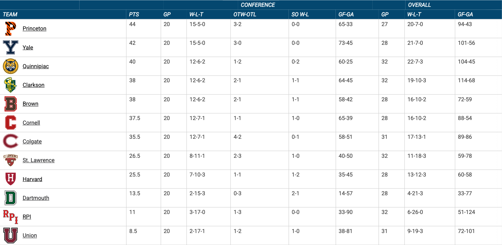 The race for fourth place, and a first-round playoff bye, gets even wilder. Only Princeton has clinched a top-four finish, and a whopping six other teams could claim a first-round bye. Cornell and Colgate both play Clarkson, while the aforementioned Quinnipiac and Princeton vs. Brown and Yale pairing also takes place.