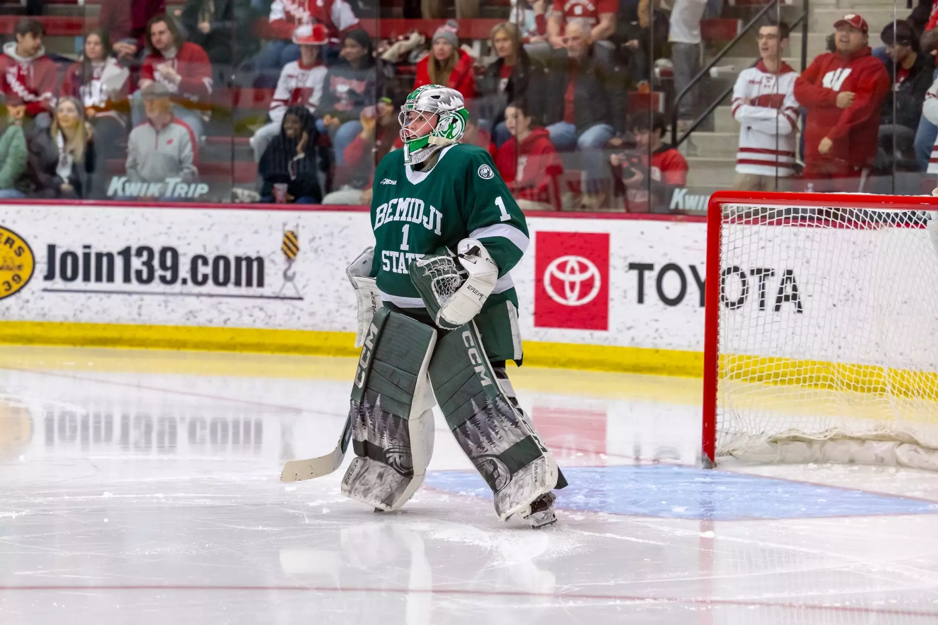 Similar to some other entries that landed at the bottom of their conferences, Bemidji State falls into the โdisappointingly boringโ category. I actually like their smiling beaver logo, and I think it would totally work as a main crest a la Penn State. However, the Beavers decide to stick with wordmarks for the focal points of their jerseys. On one of their white uniforms, itโs an athletic script โBeavers.โ Okay, fine, I do like a good athletic script. But on their green set and its color-swapped partner, itโs just the name of their school in a block serif surrounding the dreaded front numbers. Not only that, the Bemidji State jerseys have nearly nothing else going on except for the wordmarks. The Beavers appear to use the same template as Penn State, with only one thick stripe around each arm and the waist. The white jerseys do have a green shoulder yoke to add a little more balance, but itโs still incredibly dull. If Bemidji State redesigns its uniforms, I want to see the Beaver logo, and Iโd like to see a cool striping pattern to take advantage of the fact that green and white are a great color combo.