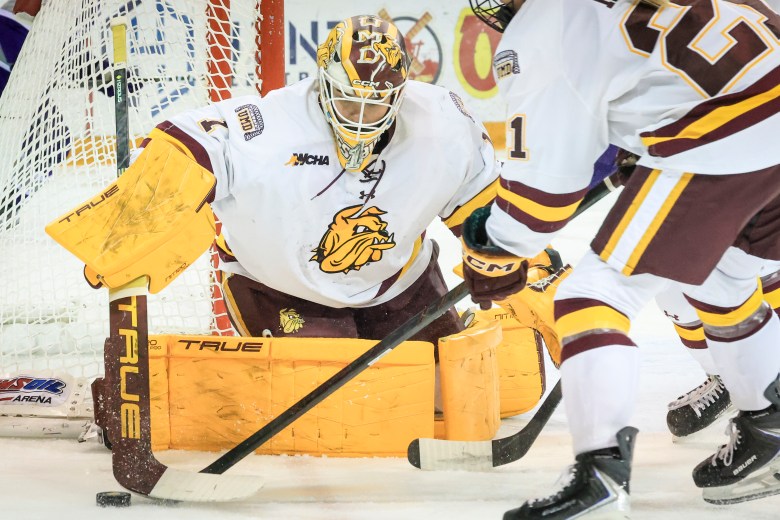 The University of Minnesota Duluth is known for outstanding goaltenders, such as Emma Söderberg and Kim Martin Hasson. The program holds the record for most winners of the WCHA’s Goaltender of the Year award, with four. Former Bulldog Söderberg won in 2021 and 2023. Gascon soon followed with two wins as well.