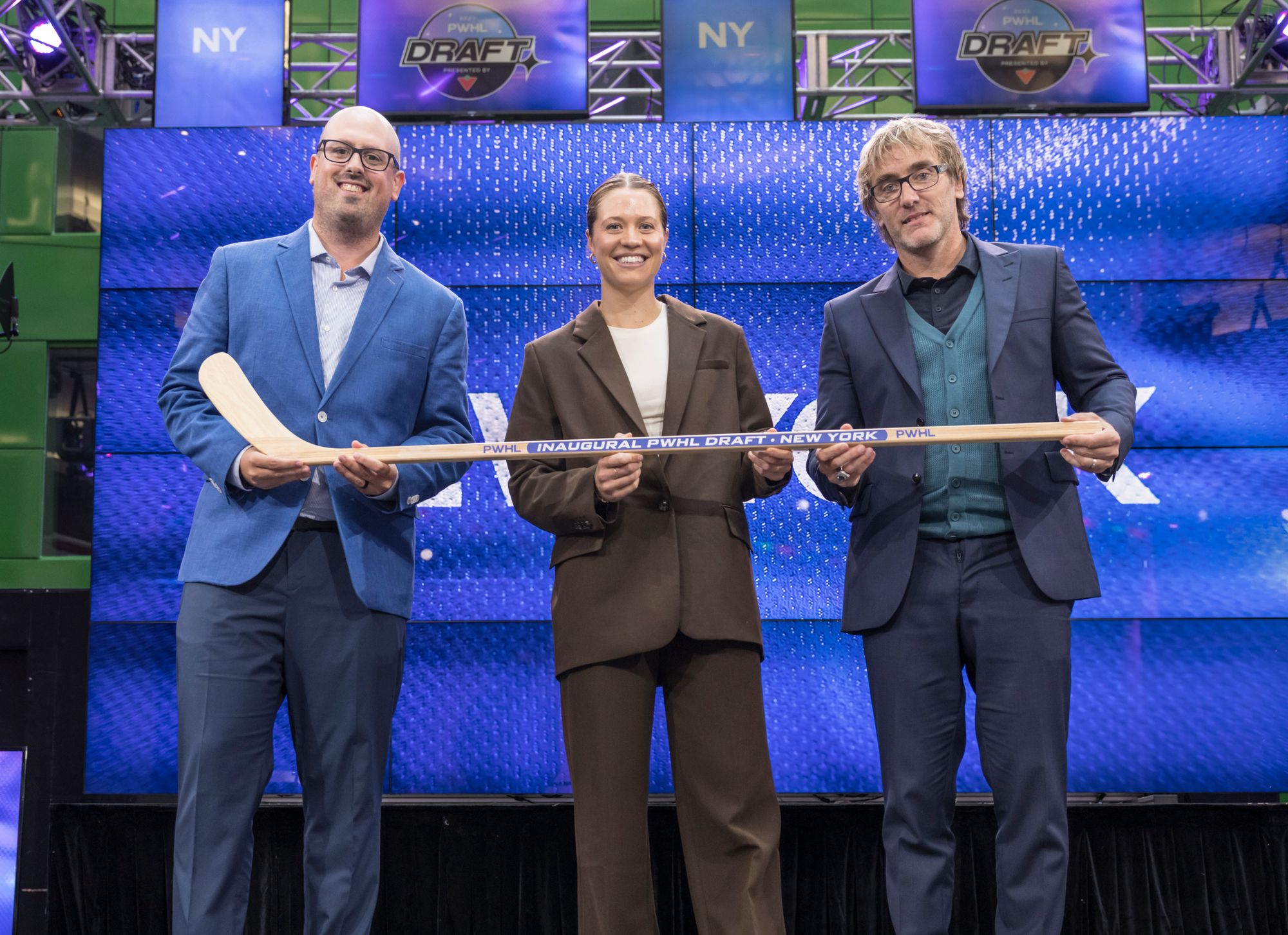 Emma Woods ( center ) PWHL Draft. Credit: PWHL