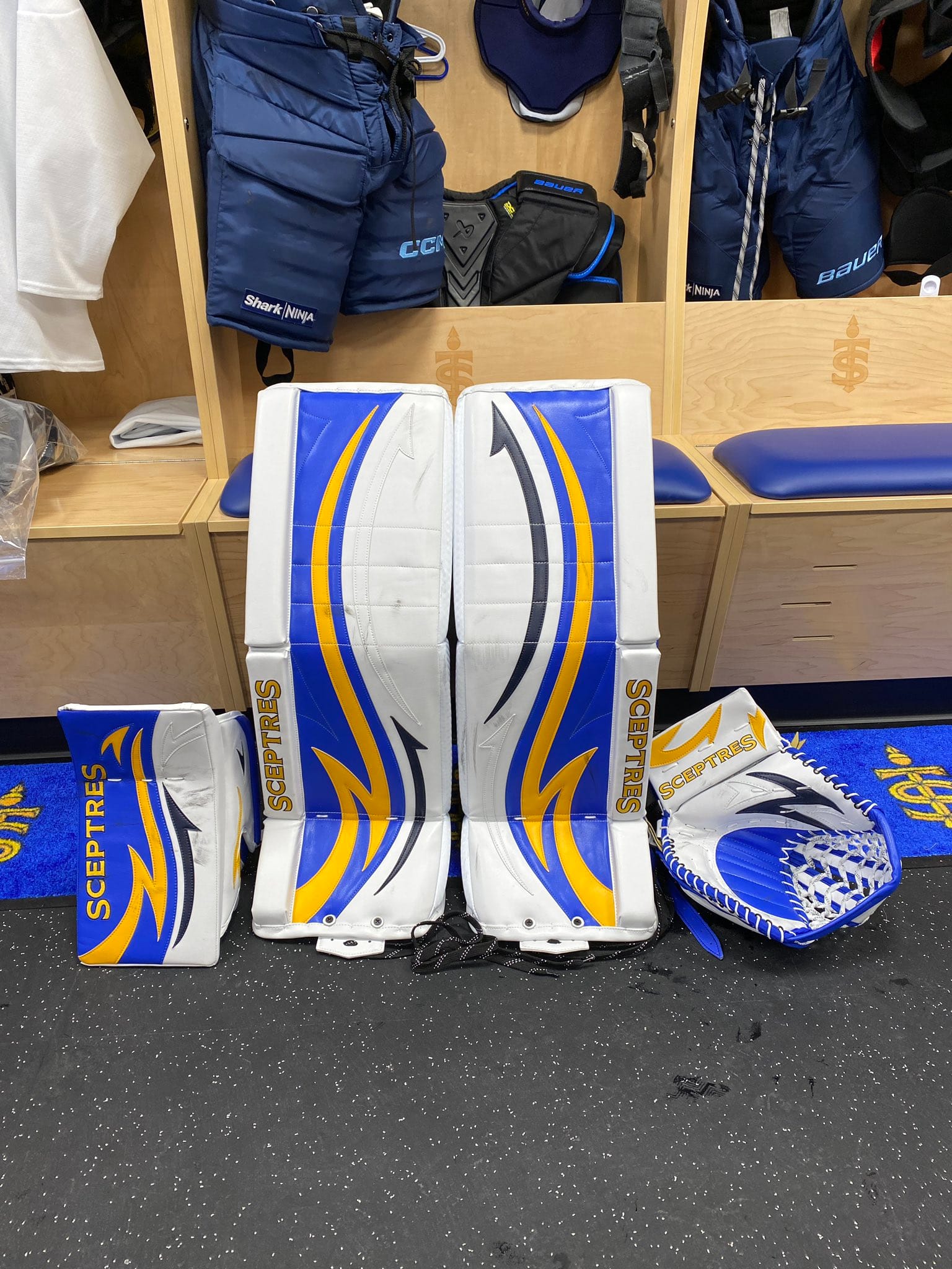 As a yellow goalie pad wearer myself, I love the colour of the home gear. But I do not like how much of it there is. The full pad set and gloves being the yellow/gold is just too much for me.
