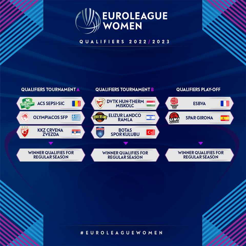 - The winner of the Qualifiers Tournament A between Sepsi, Olympiacos and KKZ will become a member of the regular-season Group A (Fenerbahรงe, Praha, Bourges, Valencia, KSC, Polkowice and Virtus Bologna).
