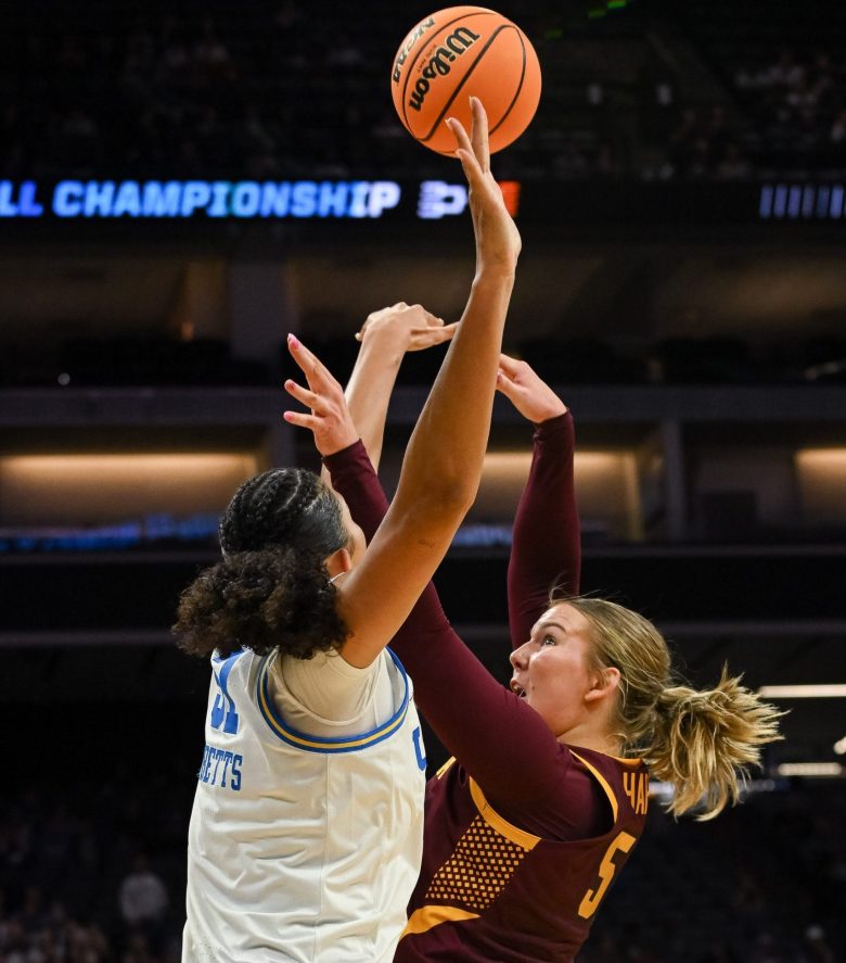 As the Bruins continued to clamp down defensively, players like Jaquez and guard Gianna Kneepkens started cutting off dribble penetration and limiting Minnesotaโs perimeter scorers. Mara Braun and Amaya Battle, who have been offensive motors for the Gophers, shot a combined 6-for-24.