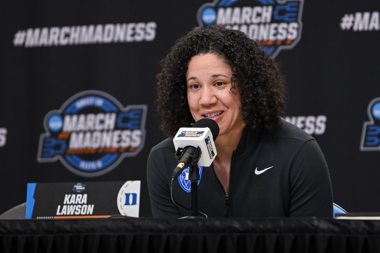 Even more than a decade and a half later, Lawson was more than comfortable being back in the City of Trees. She demonstrated as much Friday night, coaching the Blue Devils to an 87-85 upset win against No. 2 seed LSU โ with the help of a buzzer-beater by guard Ashlon Jackson. Jackson, notably, has been previously photographed pregame wearing a Lawson Monarchs jersey as an homage to her coach’s days as a player.